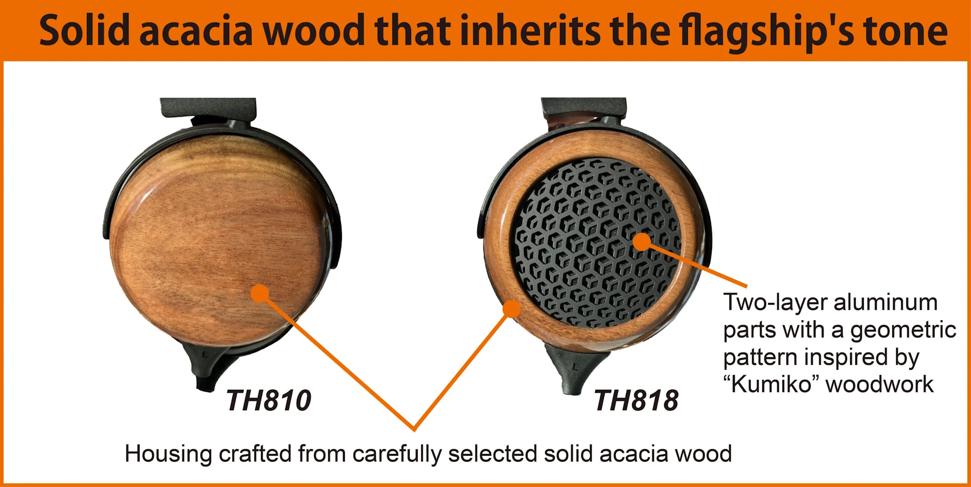 Fostex vient d'annoncer les nouveaux casques supra-auriculaires haut de gamme TH810 (fermé) et TH818 (ouvert). Ces deux casques utilisent les mêmes composants que les casques phares TH910 et TH919 précédemment annoncés, mais utilisent des boîtiers en bois d'acacia plus abordables plutôt que des boîtiers en érable laqué japonais décorés d'un motif en feuille d'argent fumé au soufre.