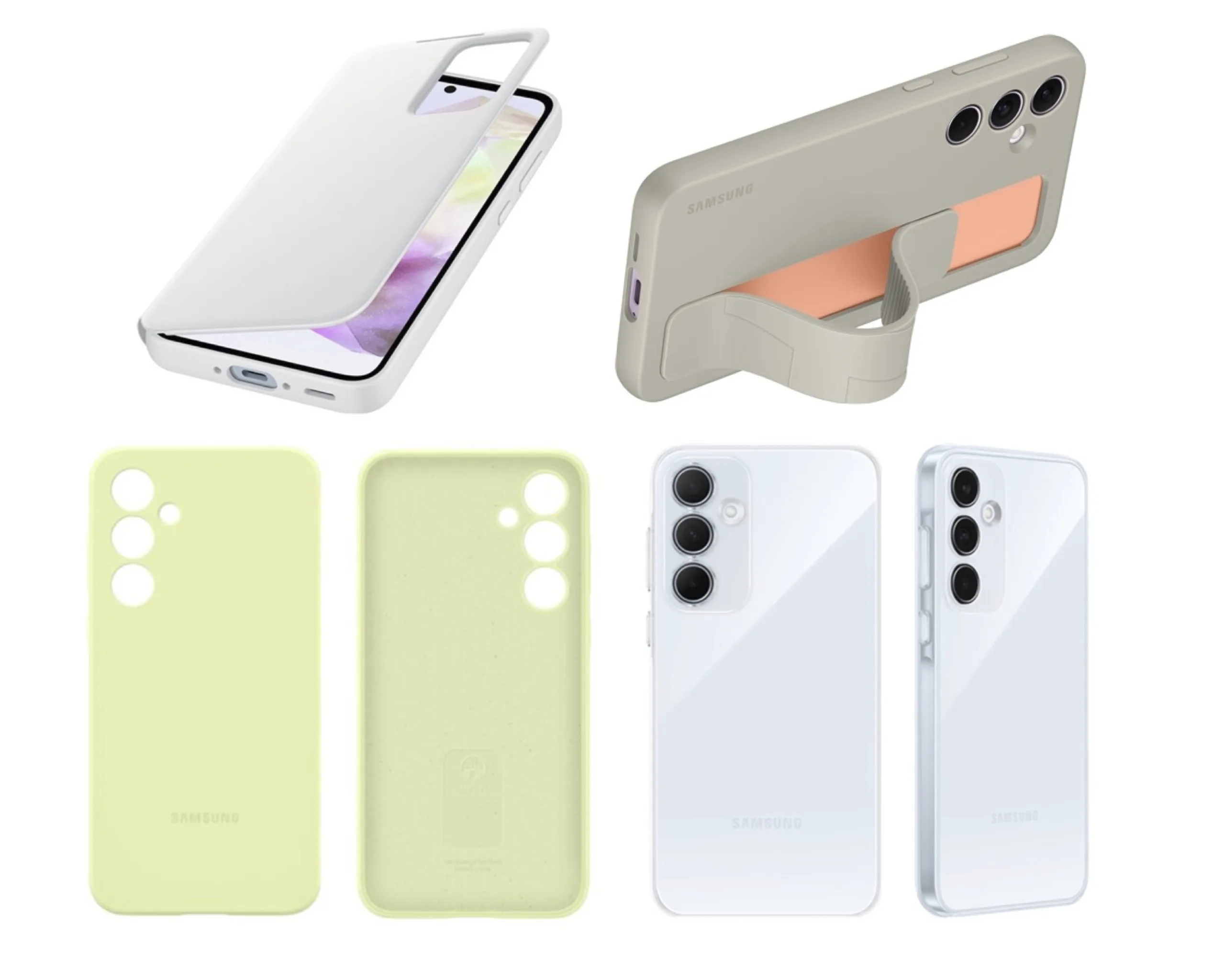La fuite d'Appuals ne met pas seulement en évidence les étuis de Samsung, mais elle montre également des aperçus des smartphones eux-mêmes. Comme prévu, les Galaxy A35 et Galaxy A55 sont le portrait craché de l'un ou l'autre, dans la mesure où leurs designs transparents semblent identiques. En outre, ces options transparentes seront lancées avec les accessoires suivants :
