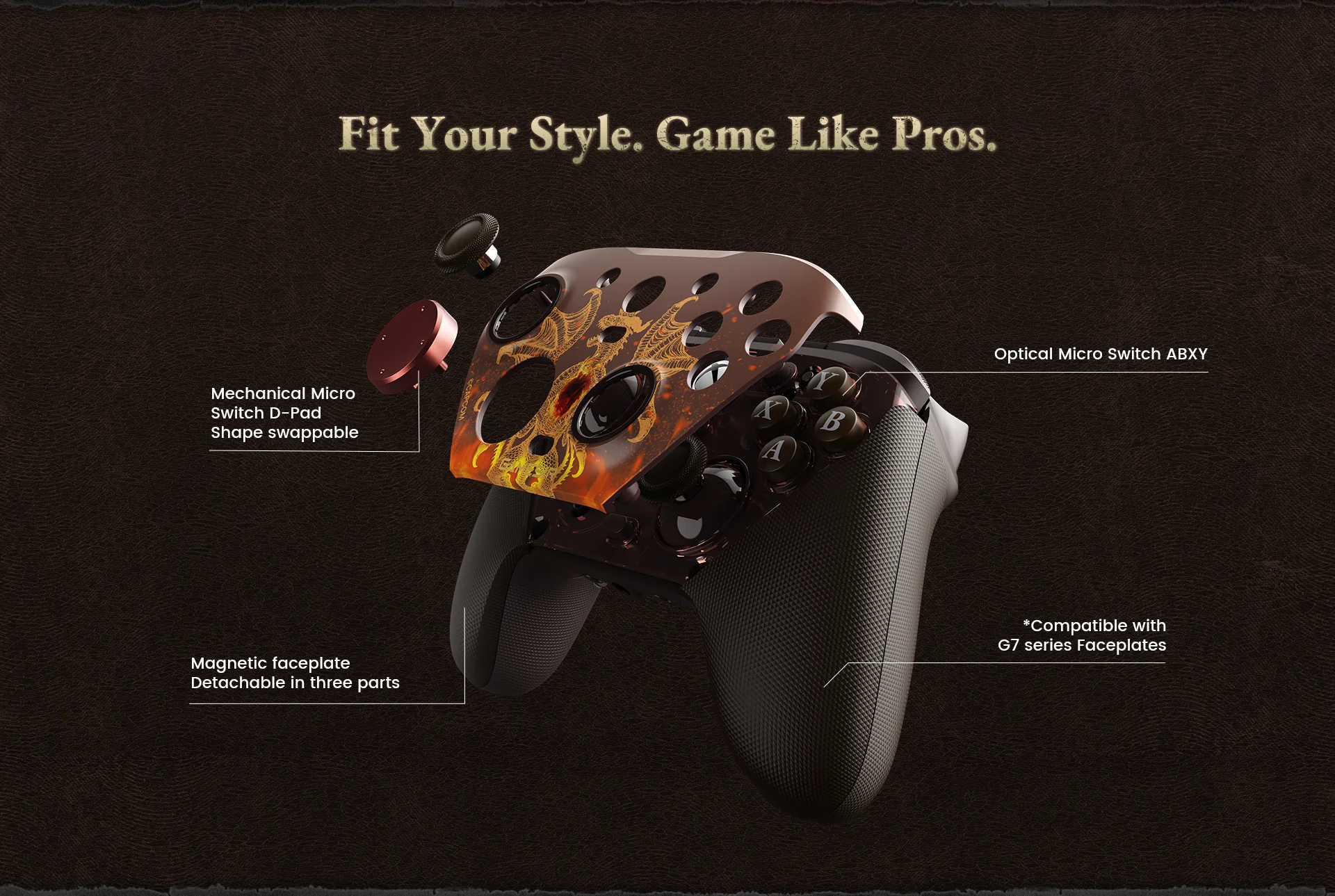 La GameSir G7 Pro Dragon's Dogma II Edition est le résultat d'une collaboration entre GameSir et Capcom pour célébrer le deuxième anniversaire de Dragon's Dogma II. La manette présente un design personnalisé sur la plaque frontale et le logo Dragon's Dogma II sur la station de chargement.