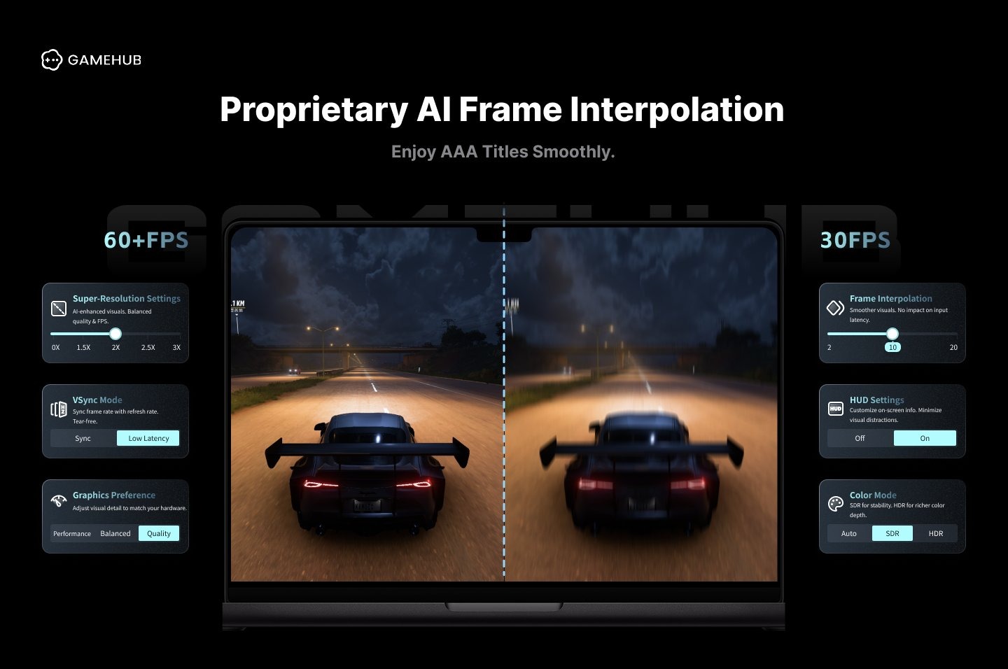 Une image jointe au message montre que GameHub pour Mac permettra aux utilisateurs de contrôler plusieurs paramètres de jeu. Les utilisateurs pourront modifier des caractéristiques telles que l'upscaling de l'image AI (super-résolution), les performances graphiques, le mode de couleur et même le mode VSync. GameSir n'a pas révélé la date de sortie du programme, mais l'annonce précise qu'elle est "imminente".