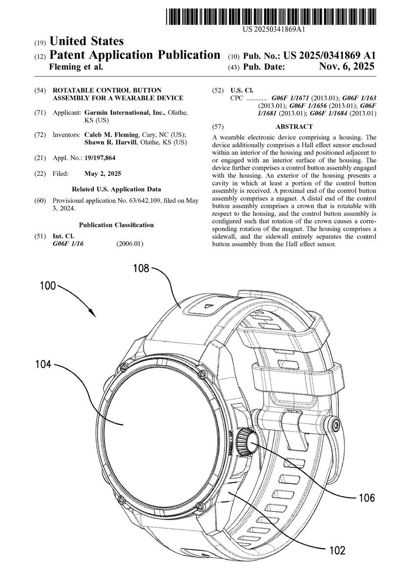 Dans un premier temps, nous avons soupçonné qu'un brevet récent était à l'origine des conclusions de Gadgets & Wearables. Malheureusement, Justia et d'autres sites web comparables n'ont donné aucun résultat pertinent. Wearable a toutefois découvert le brevet qui semble étayer une grande partie des revendications antérieures de Gadgets & Wearables. Déposé en tant qu'"assemblage de bouton de commande rotatif pour un appareil portable" sous le numéro de brevet 20250341869, Garmin décrit le bouton de commande comme étant un bouton de commande rotatifgarmin décrit le bouton de commande comme suit :