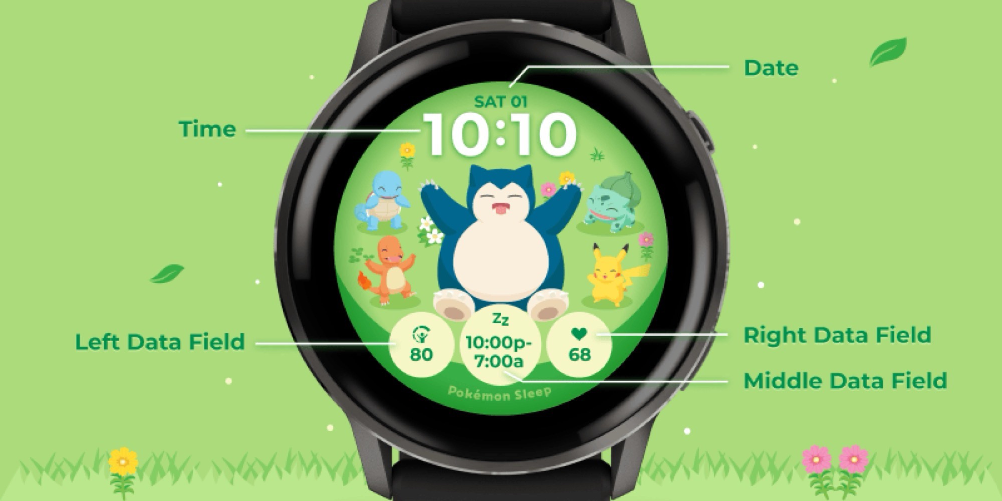 Les deux cadrans de montre Pokémon Sleep : Snorlax & Friends et Pokémon Sleep : I Choose You sont désormais disponibles gratuitement sur Garmin Connect. Snorlax & Friends montre Snorlax et les Pokémon de départ de la première génération de Pokémon. Pendant la journée, la pose de Snorlax indique la batterie corporelle, c'est-à-dire la forme physique de l'utilisateur selon les données collectées par la smartwatch ; la nuit, la pose est choisie au hasard