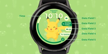 Outre la date et l'heure, le cadran de la montre offre également un espace pour trois complications rondes qui peuvent être sélectionnées librement pour afficher, par exemple, les pas effectués, la fréquence cardiaque ou les détails du suivi du sommeil directement sur le cadran de la montre. Le second cadran, appelé Pokémon Sleep : I Choose You, permet aux utilisateurs de choisir parmi un total de 48 Pokémon différents. Ce cadran adapte également la pose du Pokémon à la batterie du corps, mais le cadran offre de l'espace pour cinq complications.