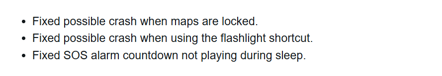 La mise à jour stable 20.24 résout deux autres problèmes susceptibles de faire planter la Fenix 8 et les smartwatches associées. Le premier problème se produisait lorsque les cartes étaient verrouillées, et le second était lié au raccourci de la lampe de poche. Le dernier bug corrigé concerne le compte à rebours de l'alarme SOS qui, apparemment, ne fonctionnait pas comme prévu pendant le sommeil.