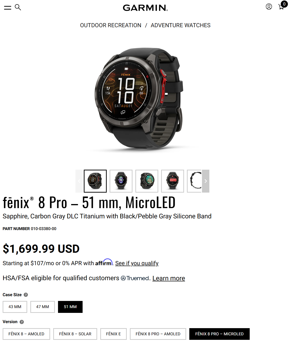 Initialement, un écart de 800 dollars existait entre les versions de 51 mm de la Fenix 8 Pro avec des écrans AMOLED et MicroLED. Par conséquent, le seul moyen d'opter pour la nouvelle technologie d'affichage ultra-lumineux de Garmin était de débourser 1 999,99 $.