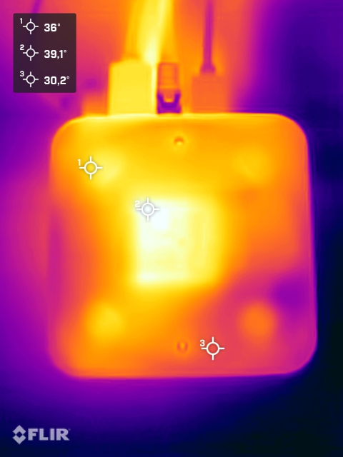 (±) En utilisation inactive, la température moyenne du côté supérieur est de 33.7 °C / 93 F, par rapport à la moyenne du dispositif de 32.4 °C / 90 F.
