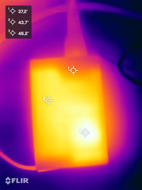 (±) Le fond chauffe jusqu'à un maximum de 41.9 °C / 107 F, contre une moyenne de 36.6 °C / 98 F