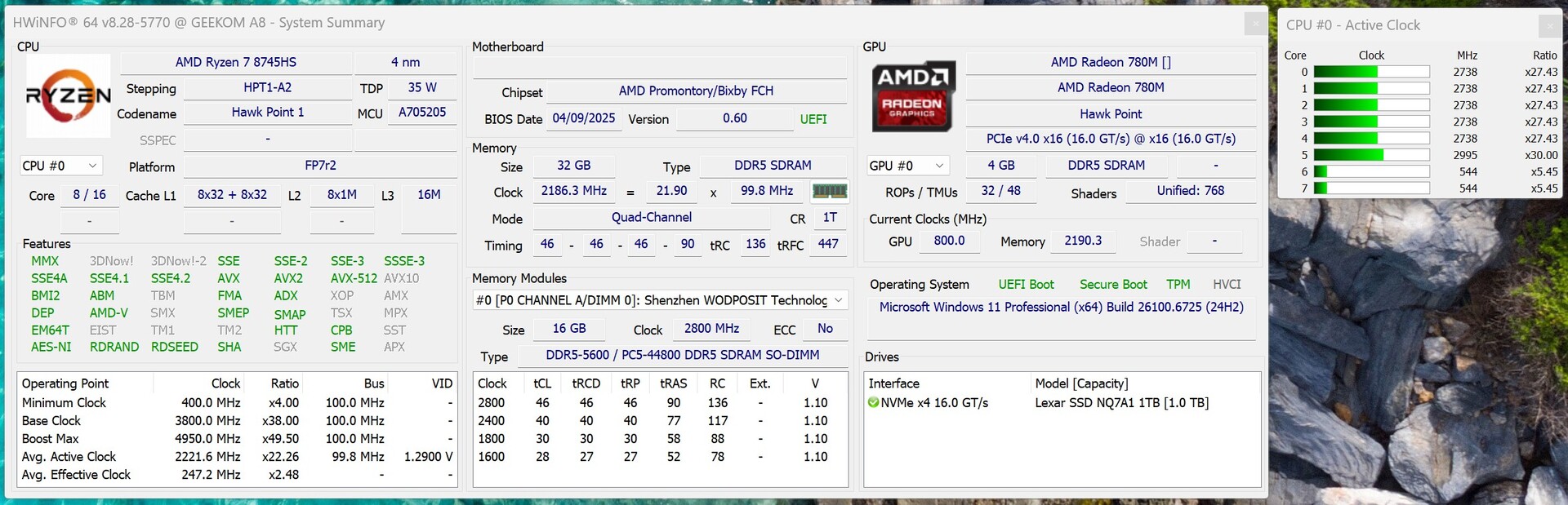 | Geekom A8, R7 8745HS (AV Pro SD microSD 128 GB V60) | |
