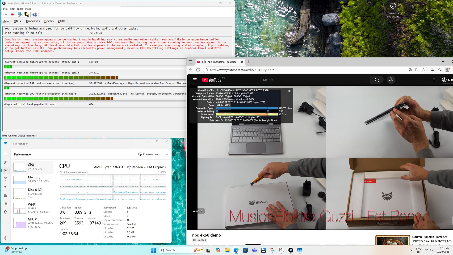 Le Geekom A8 ne réussit pas le test et se distingue par des latences DPC élevées. Cependant, il n'y a que quelques images perdues lors de la lecture de la vidéo de test 4K, ce qui signifie que le mini PC est toujours adapté comme client de streaming.