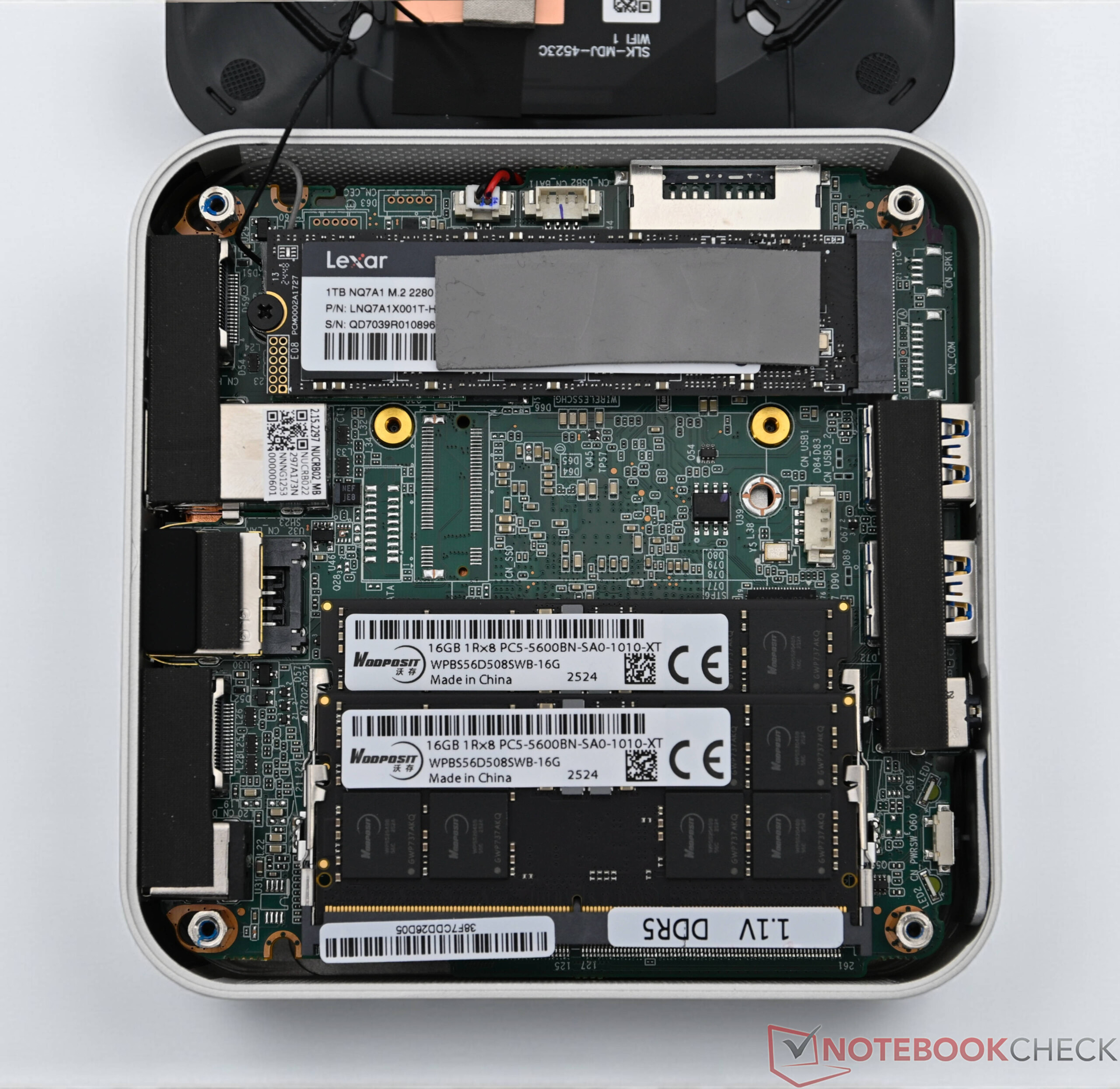 Le Geekom A8 est toujours livré avec une RAM et un SSD préinstallés et est donc prêt à être utilisé immédiatement. Une mise à jour est possible, mais nécessite une certaine habileté lors de l'ouverture du boîtier compact. Vous trouverez plus de détails dans le test du modèle identique avec un APU plus rapide.