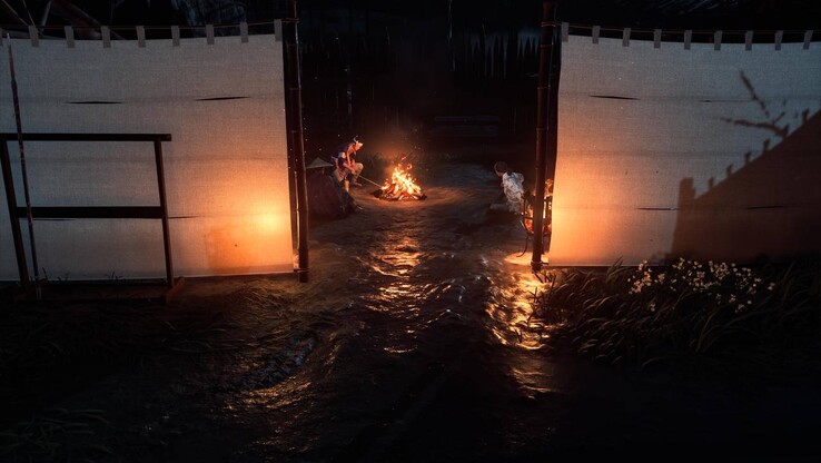 Ghost of Yotei ne change fondamentalement rien à la formule de Tsushima. Le vaste monde ouvert regorge de choses à faire. Mais cette fois, trouver des sanctuaires et des sources d'eau chaude est banalisé si vous pouvez vous procurer des fragments de carte. Certains peuvent être achetés tandis que d'autres peuvent être obtenus en interagissant avec les PNJ. Les oiseaux d'or vous guident vers les points d'intérêt, mais peuvent être désactivés pour plus d'immersion. Dans l'ensemble, il s'agit d'une version améliorée de ce que Tsushima avait à offrir. La possibilité d'établir un campement est une aubaine, car cela vous donne un point de réinitialisation instantané pour récupérer votre santé/esprit, ainsi qu'un point de déplacement rapide dynamique. Les mini-jeux de cuisine et d'allumage de feu sont des ajouts bienvenus, et bien qu'ils deviennent fastidieux au bout d'un moment, ils offrent un répit bienvenu par rapport à l'exploration et aux combats. Les peintures et les chansons jouées sur votre Shamisen sont un autre moyen de se détendre. Ghost of Yotei utilise les haut-parleurs du DualSense de manière spectaculaire, et je dirais même que c'est l'une des meilleures implémentations jamais réalisées.