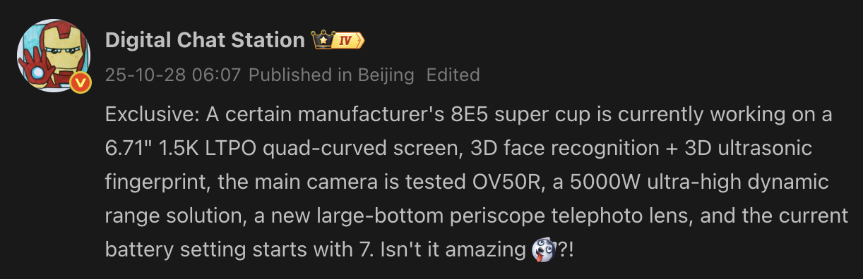 Une nouvelle fuite provenant du site Digital Chat Station laisse entrevoir les spécifications d'un prochain modèle phare, qui, selon GSMArena indique qu'il s'agit probablement du Magic 8 Ultra. Selon l'informateur, le prochain téléphone pourrait être doté d'un écran LTPO OLED quadri-courbé de 6,71 pouces avec une résolution de 1,5K. Cet écran est plus petit que celui du Magic 7 RSR Porsche Design, qui comportait un écran de 6,8 pouces.