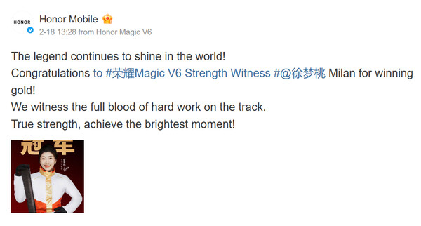 Plus précisément, la skieuse aérienne Xu Mengtao a été prise en photo avec le même appareil lors de sa récente médaille d'or. Mengtao a également l'habitude d'utiliser publiquement des appareils pliables, notamment les appareils Huawei Mate XT de Huawei de Huawei et les anciens Magic Vs de Huawei. Nous ne serions donc pas surpris si Honor avait coordonné avec Mengtao le teasing public du Magic V6 avant son lancement officiel.