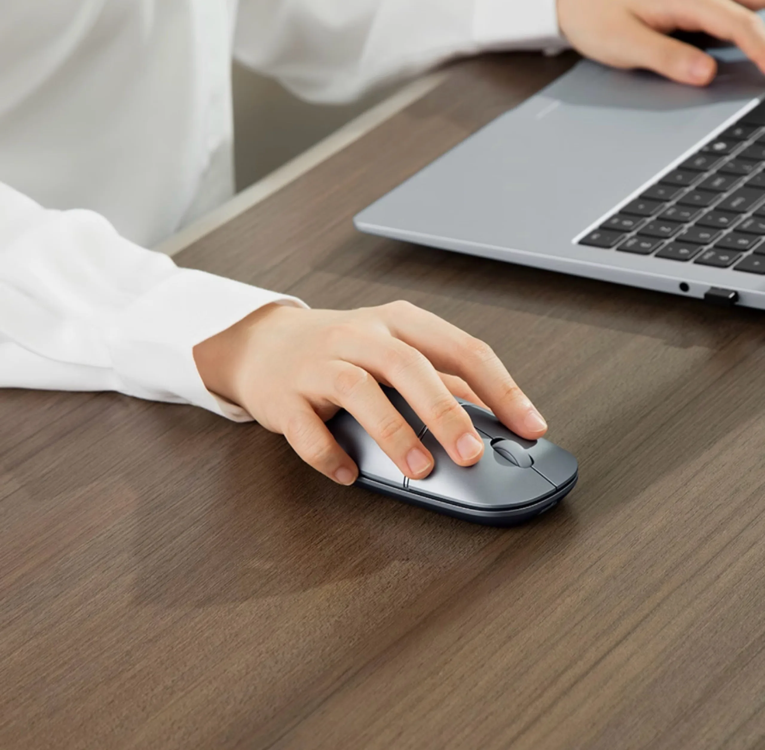 Pratique : Dès que la souris est appariée à un ordinateur via Bluetooth, les écouteurs sont automatiquement appariés au même PC, de sorte qu'ils restent connectés lorsque les écouteurs sont retirés de la souris. Il est également possible d'appairer les écouteurs avec un autre appareil, par exemple pour passer des appels via un smartphone. La conception 2 en 1 devrait non seulement améliorer le confort par rapport à deux produits distincts, mais aussi permettre d'avoir un bureau mieux rangé et de gagner de la place dans vos bagages