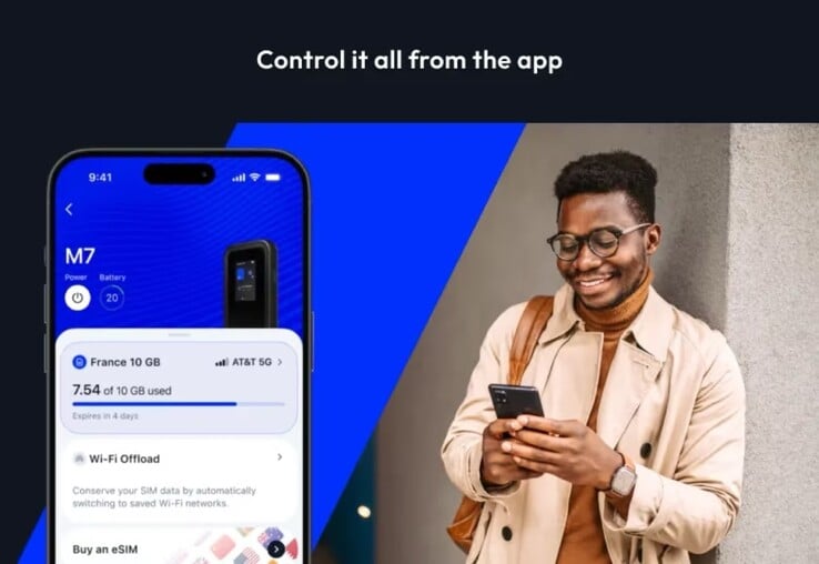 Selon Netgear, le Nighthawk 5G M7 prend en charge les réseaux 5G dans plus de 140 pays et peut être utilisé avec une nano SIM ou une eSIM. Android L'application pour smartphone qui l'accompagne est disponible pour les téléphones iPhone et Apple et propose une place de marché eSIM destinée à faciliter le choix du forfait adapté à un prochain voyage. L'application indique également les données restantes et le niveau de batterie du hotspot mobile 5G.