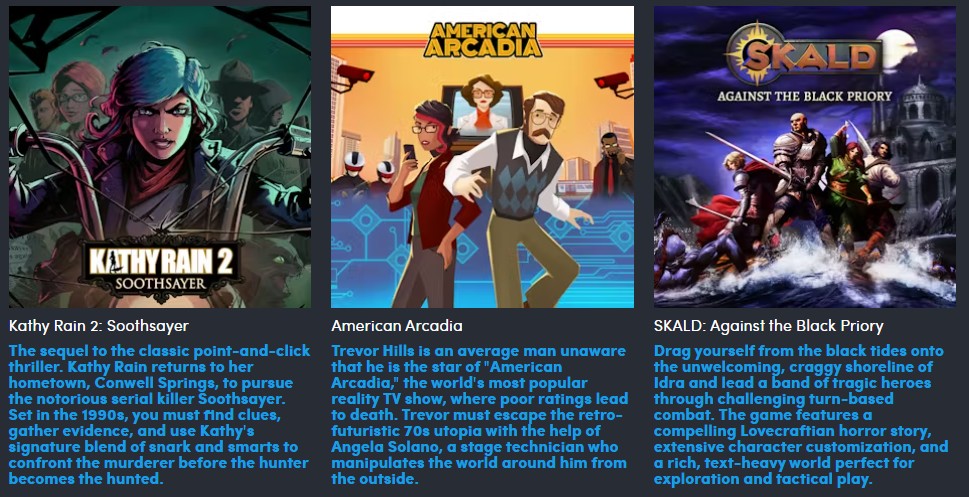 - Kathy Rain Directors Cut - un jeu d'aventure point-and-click primé sorti en 2021. Le titre coûte 14,99 $ lorsqu'il n'est pas en promotion, et il porte l'étiquette de compatibilité Steam Deck Verified.