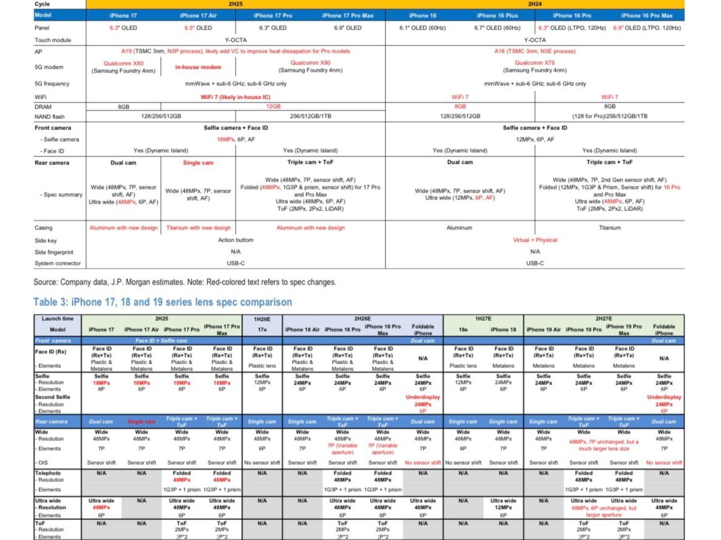 L'analyste industriel Max Weinbach a publié une comparaison des spécifications de JP Morgan pour les prochains modèles d'iPhone, qui mentionne l'iPhone Air 2 et l'iPhone Air 3. Weinbach souligne que JP Morgan et d'autres banques de ce type sont "très douées" pour obtenir ce genre d'informations de la chaîne d'approvisionnement. Cela suggère que la chaîne d'approvisionnement Apple se prépare pour l'iPhone Air 2 et Air 3, ou quel que soit le nom qu'on leur donne, malgré les ventes médiocres de l'iPhone Air.