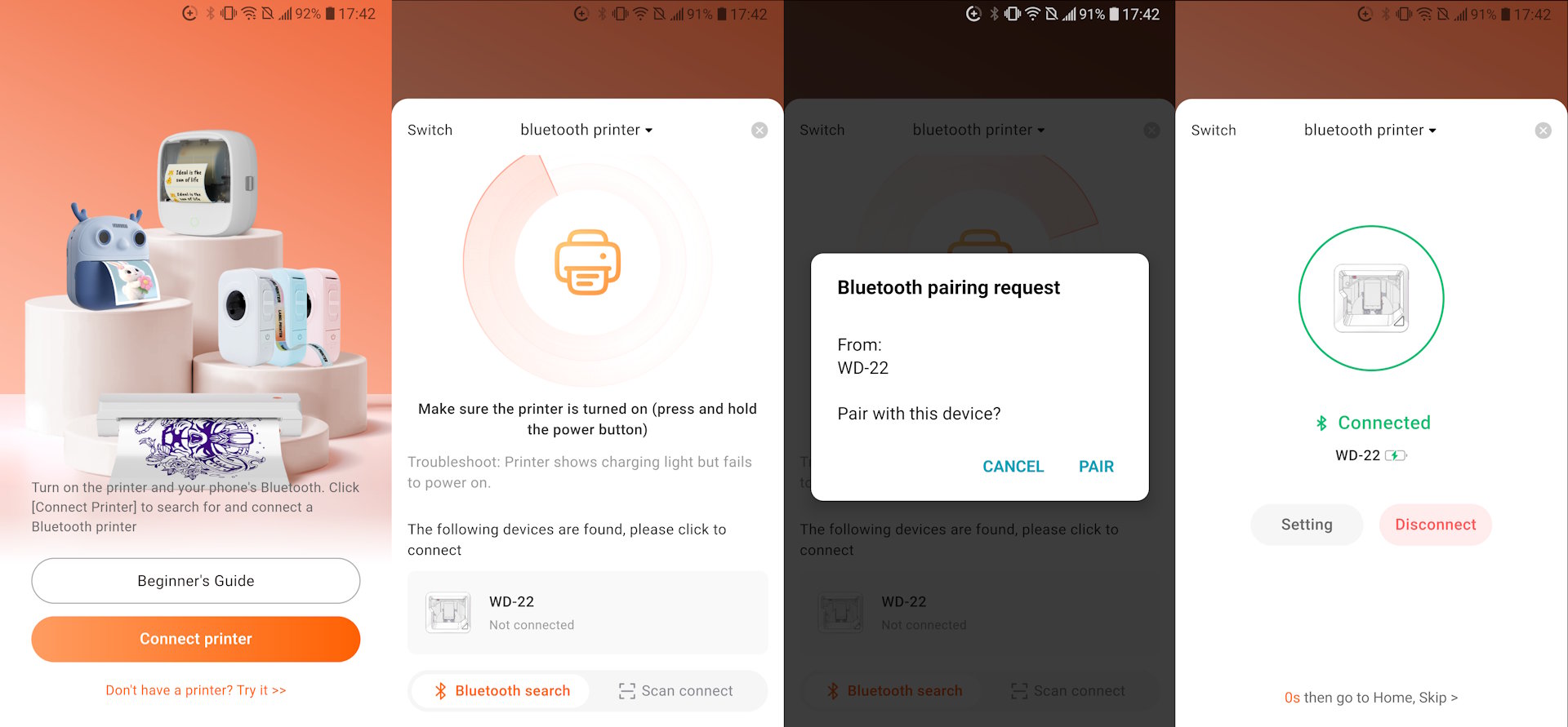 L'application Android/iOS contrôle l'imprimante et nécessite que les services Bluetooth et de localisation soient activés pour que le Tag Inkwon puisse se connecter.