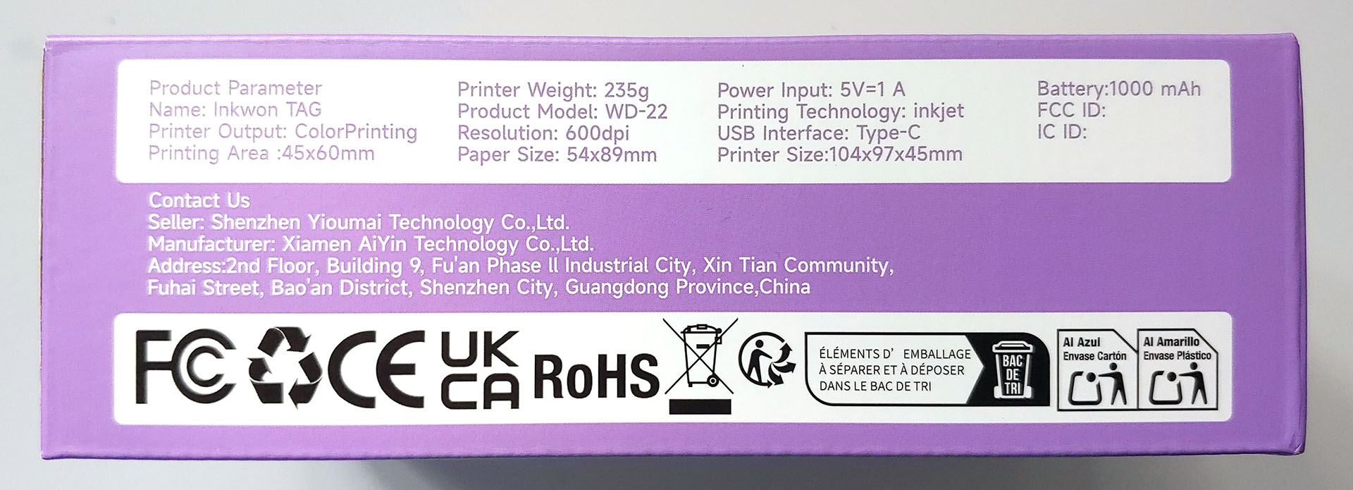 L'Inkwon Tag utilise des cartouches à jet d'encre à base de colorants tricolores (CYM) avec des buses intégrées qui chauffent l'encre pour former des bulles thermiques, comme le système de HP. La qualité d'impression dépend de facteurs tels que le nombre d'encre, la taille des points et la résolution.