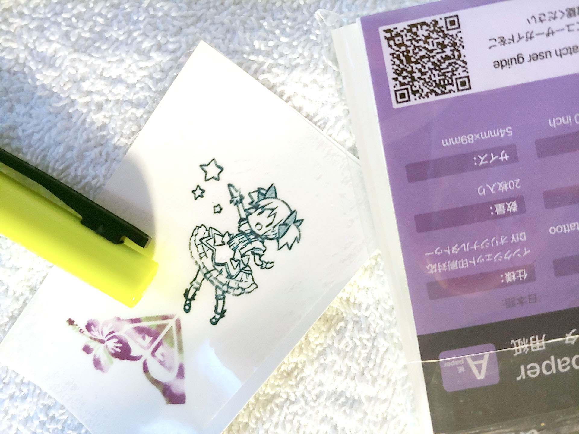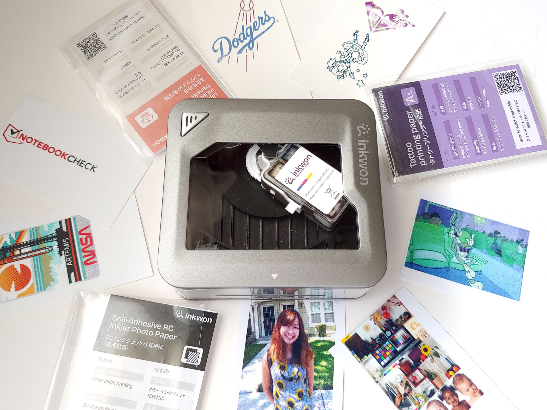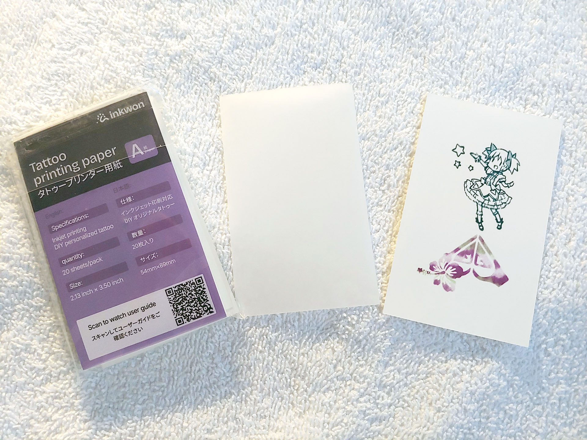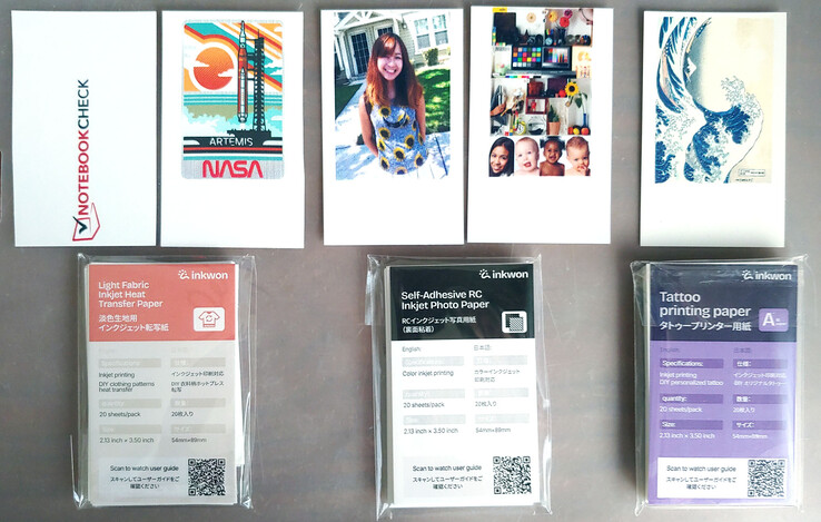 L'étiquette Inkwon est livrée avec trois types de papier - transfert thermique de tissu léger, papier photo autocollant et papier de tatouage - qui permettent un large éventail d'utilisations créatives. Le kit d'échantillons comprenait également des éléments permettant d'essayer les thermocollants.