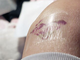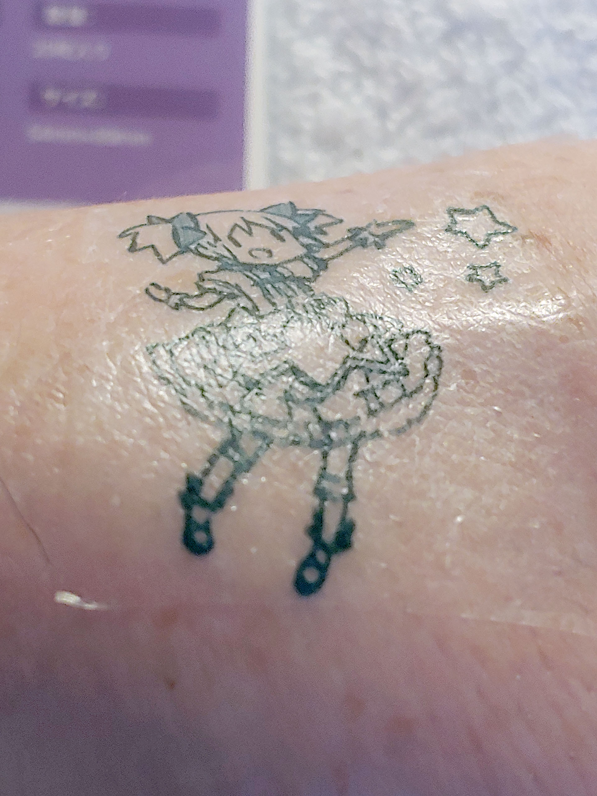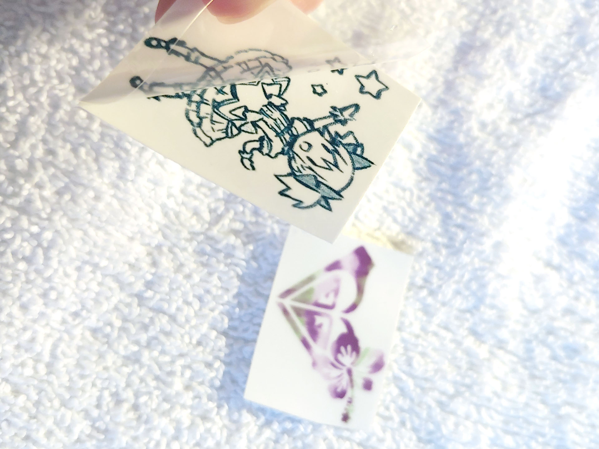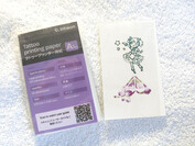 Les utilisateurs peuvent tester rapidement des idées de tatouages temporaires. Une feuille transparente transfère un adhésif sur le tatouage imprimé, puis est jetée. La feuille de tatouage est placée face vers le bas sur la peau, mouillée et décollée pour appliquer l'image.