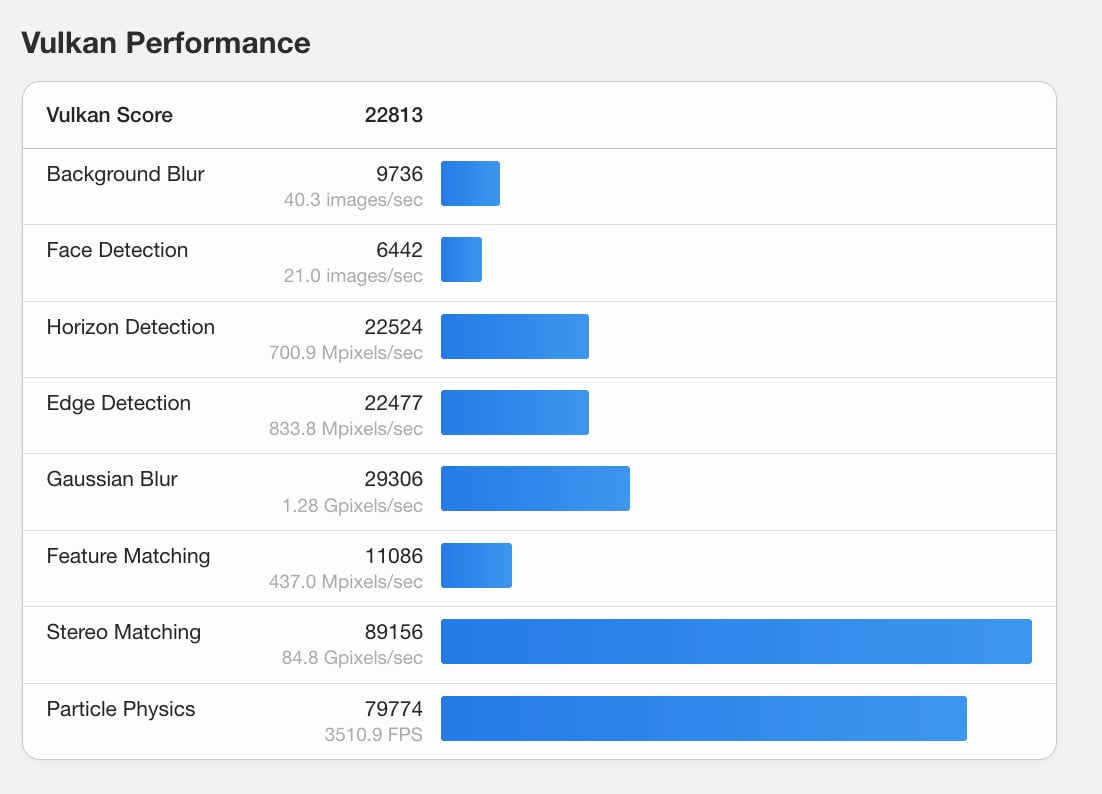 Malheureusement, Geekbench ne précise pas le nombre de cœurs Arc Xe3 que possède cet iGPU. Néanmoins, son score de 22 813 dans Geekbench 6.5.0 Vulkan le place au même niveau que la Radeon 840M et ses 4 unités de calcul (CU). Il pourrait s'agir du même iGPU que celui que l'on trouve dans les Core Ultra 5 336H et Core Ultra 5 338H, plutôt que des équivalents à 10 cœurs comme l'Arc B360 ou l'Arc B370 Arc B360 ou Arc B370.