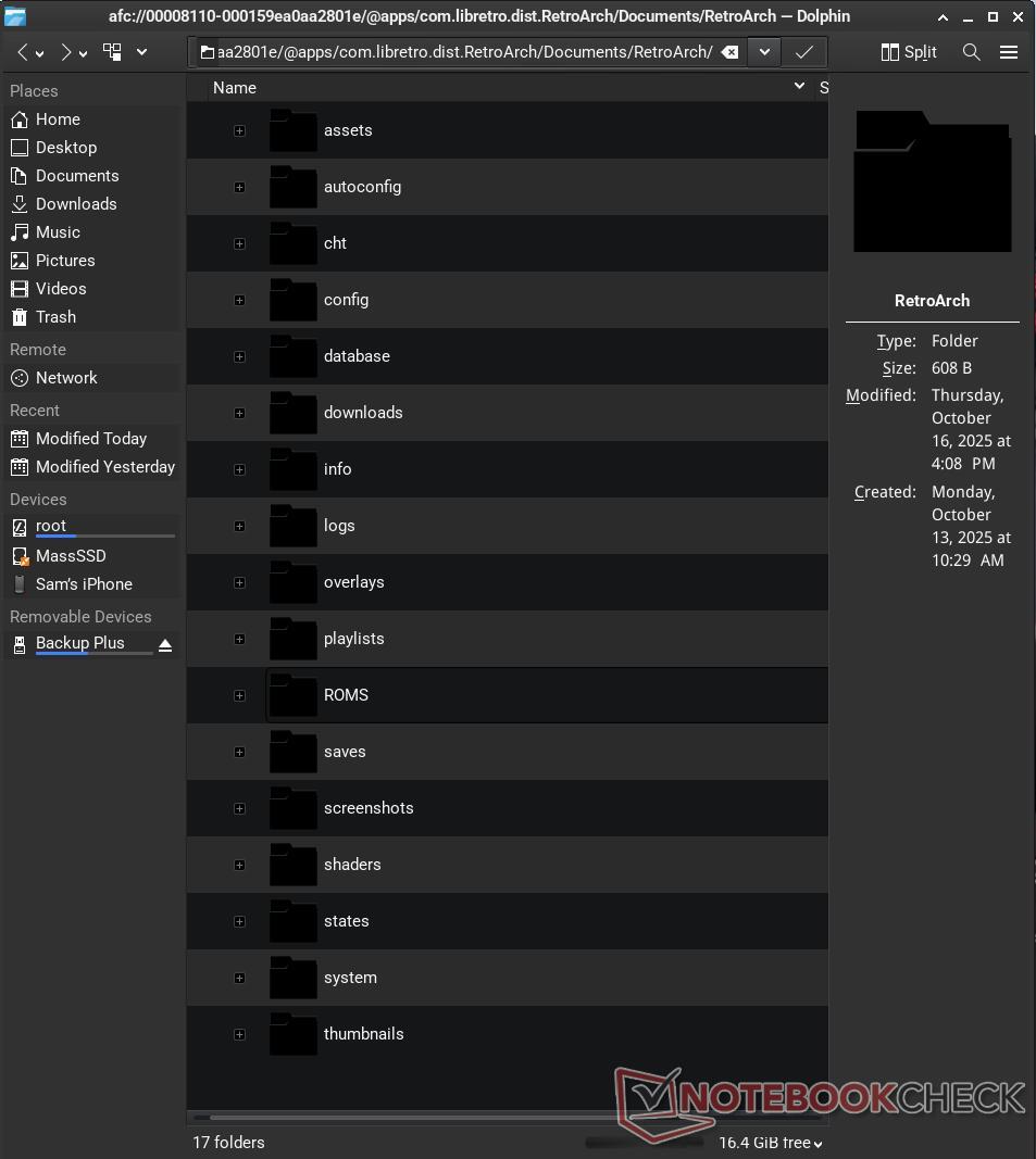 Lorsque j'ai essayé d'installer KDE (voir ci-dessus), le gestionnaire de fichiers Dolphin est resté sur mon appareil. J'ai commencé à utiliser Dolphin et je l'ai préféré au gestionnaire de fichiers par défaut de XFCE4 (Thunar). Dolphin m'a réservé une agréable surprise : il pouvait détecter mon iPhone lorsqu'il était branché. Cela a permis de transférer des fichiers vers et depuis mon téléphone en un clin d'œil, car le gestionnaire de fichiers accordait un accès complet aux fichiers de l'iPhone. Compte tenu de l'évolution de la gestion des fichiers de Apple sur iOS, il existait des fichiers spécifiques pour chacune de mes applications. Le processus global est nettement plus simple que sous Windows, car iTunes n'est plus nécessaire.