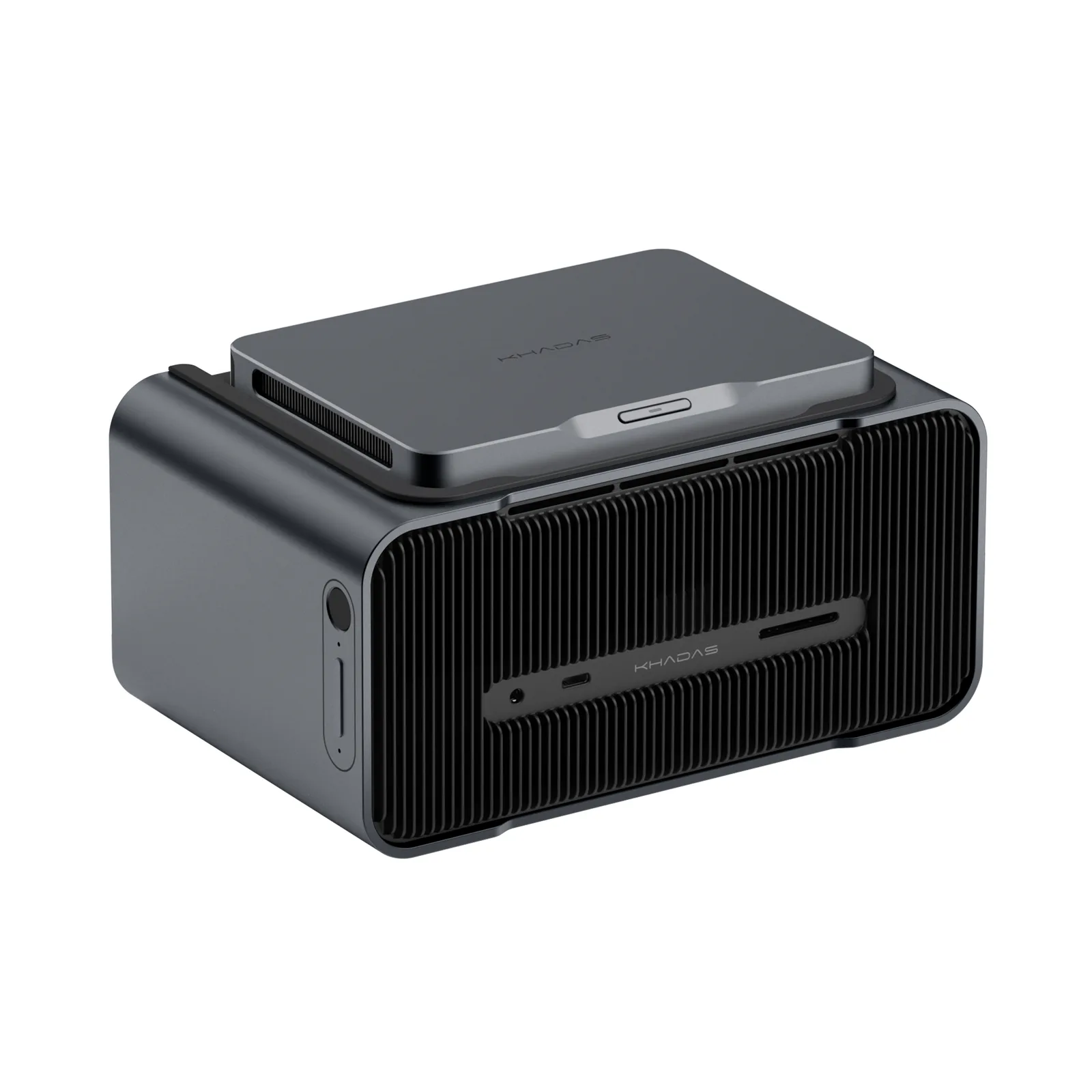 Khadas présente plusieurs produits au CES 2026. Le premier est le Mind Pro, un mini-PC modulaire équipé des processeurs les plus récents (bien que non spécifiés) de Intel et peut être utilisé avec une carte graphique dédiée ou comme ordinateur portable. Le modèle lui-même a un volume de seulement 0,43 litre, ce qui le rend exceptionnellement compact. Il prend en charge jusqu'à 64 Go de RAM LPDDR5x et un SSD NVMe d'une capacité maximale de 2 To. La sortie vidéo est possible via deux ports Thunderbolt 4 et HDMI. Des modules d'extension à large bande passante peuvent être connectés via quatre voies PCIe 4.0.