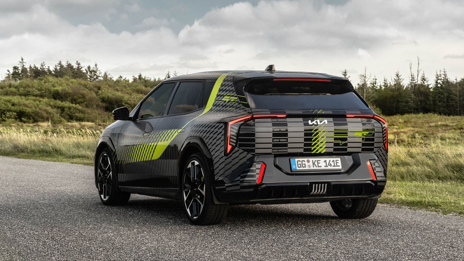 Aujourd'hui, dans un communiqué de presse https://www.press-eu.kia.com/document/633#/latest-news/kia-reveals-dedicated-gt-foil-design-capturing-motion-and-light à propos d'un nouveau GT Wrap, Kia présente la EV4 GT à hayon. Le GT Wrap est un film noir, gris et vert fluo utilisé pour camoufler les prototypes GT électriques de la marque. Kia indique que le design géométrique fait allusion à la vitesse de ses modèles GT, précisant qu'il touche au "caractère émotionnel de ses (Kia) voitures de haute performance". Les images montrent également des jantes sur mesure sur ce prototype.