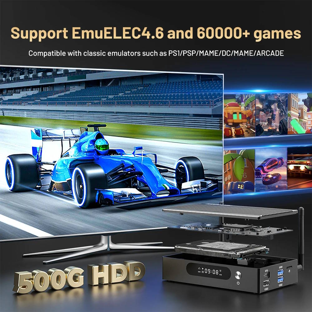 En termes de violations potentielles des droits d'auteur, le fabricant atteint probablement un nouveau palier, puisque le stockage de 500 Go est censé contenir plus de 60 000 jeux dès la sortie de la boîte. Par exemple, la console peut apparemment émuler les jeux des différentes générations de Nintendo Game Boy, ce qui fonctionnera probablement bien. Cela dit, les jeux développés pour des plates-formes plus récentes risquent de poser quelques problèmes de performance.