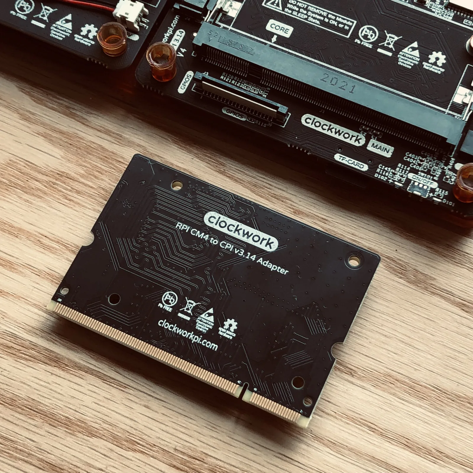 Clockwork a publié un adaptateur Raspberry Pi Compute Module 4 (CM4) pour le kit DevTerm DevTerm et la carte mère ClockworkPi v3.13. Lancé en novembre 2020, le DevTerm exploite la puissance d'un Raspberry Pi pour en faire un ordinateur portable. Alors que Clockwork a conçu le DevTerm pour la compatibilité avec le Raspberry Pi CM3, son adaptateur permet au DevTerm de fonctionner avec le CM4, malgré la décision de la fondation Raspberry Pi de modifier le facteur de forme du Compute Module.