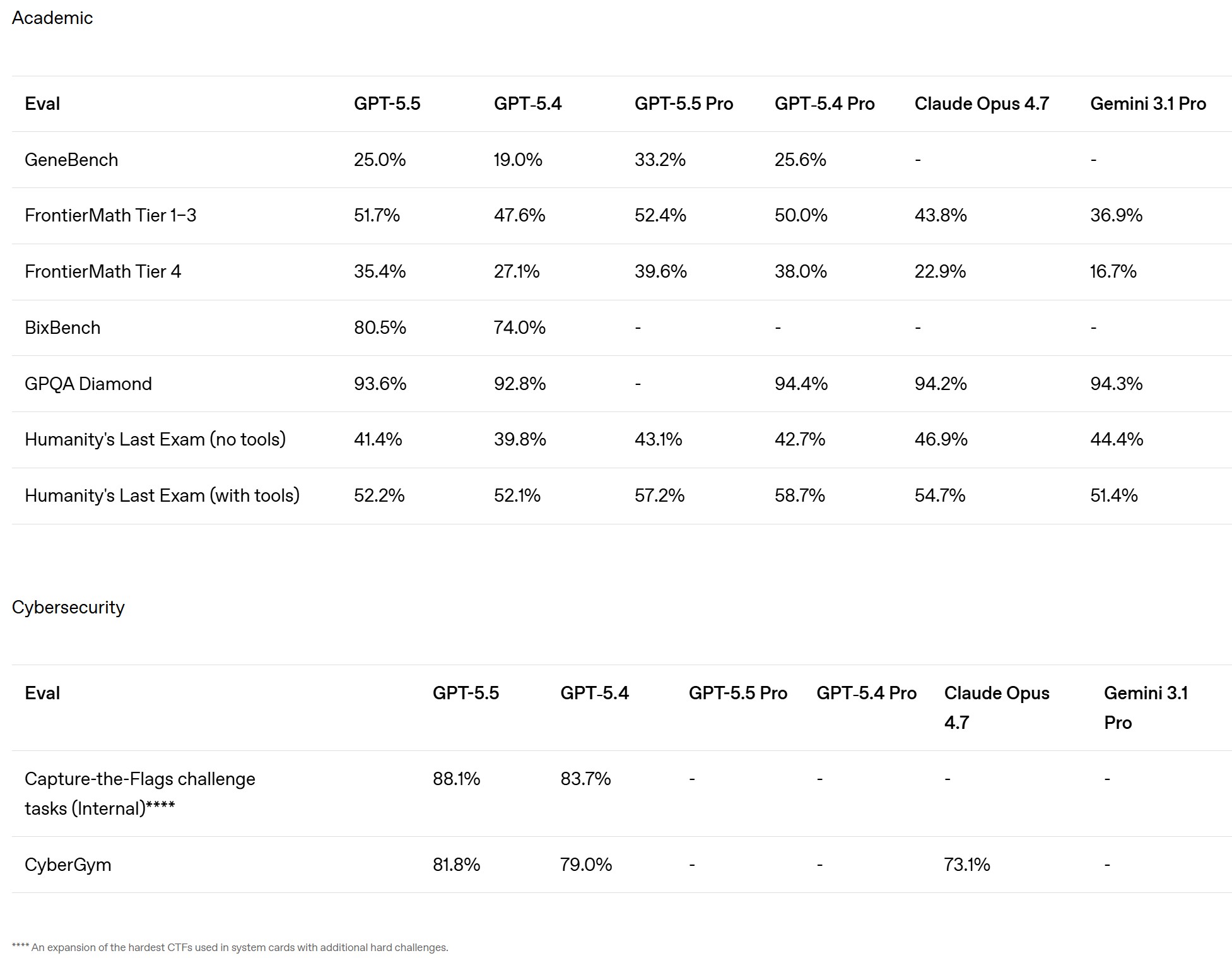 Les dernières IA d'OpenAI continuent de s'améliorer dans leur capacité à résoudre des problèmes académiques difficiles et à utiliser les ordinateurs comme des outils. Ces améliorations permettent également d'acquérir une meilleure connaissance des protocoles nécessaires pour créer des menaces biologiques et des méthodes nécessaires pour pirater avec succès des réseaux et des systèmes. Souvent, les performances de GPT 5.5 et GPT 5.5 Pro dans ces domaines sont meilleures que celles des modèles d'IA concurrents Opus 4.7 et Gemini 3.1 Pro. Dernièrement, les utilisateurs des modèles de Claude ont constaté que les IA anthropiques généraient des codes moins sûrs.