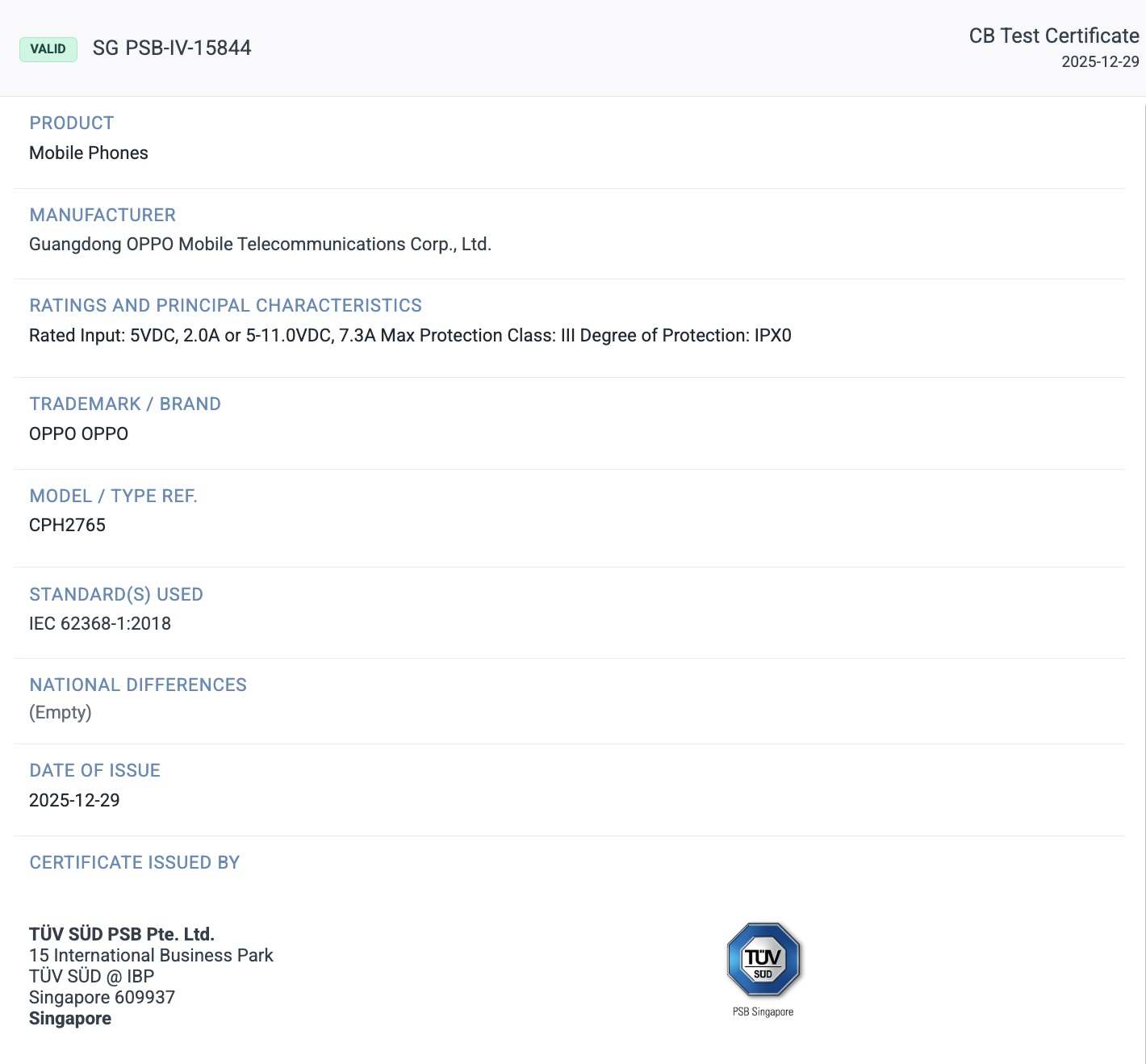 En outre, le marché mondial de l Oppo Find N6 a également été certifié par TÜV SÜD, révélant la prise en charge de la charge rapide filaire de 80 W. Pour rappel, la certification 3C a confirmé la charge à 80W pour le modèle chinois également.