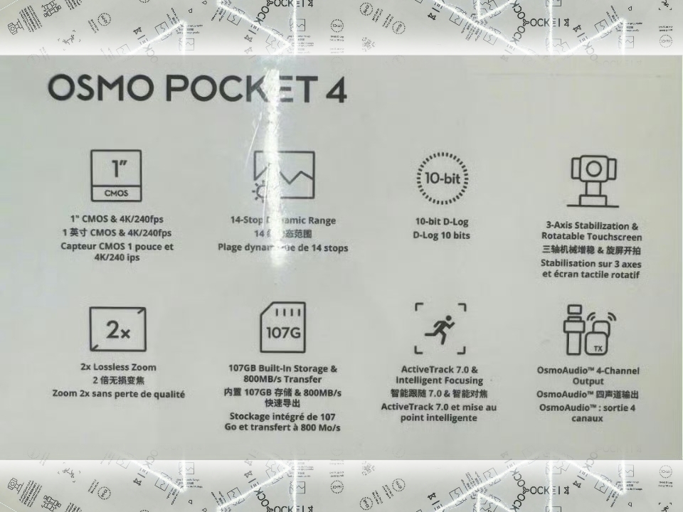 Aujourd'hui, le mystère entourant la résolution et la fréquence d'images de la DJI Osmo Pocket 4 semble avoir été résolu. Alors qu'un récent clip au ralenti partagé par DJI sur X laissait entrevoir des ralentis améliorés, une nouvelle image de l'emballage de l'Osmo Pocket 4 a fait surface, montrant clairement la spécification que les vidéastes attendaient avec impatience : 4K/240fps : 4K/240fps.