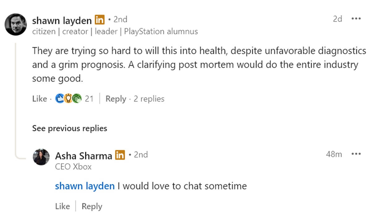 Layden a répondu à un article de The Verge sur des fuites de commentaires faits par Asha Sharma, PDG de Asha Sharma, PDG de Xbox. Elle a admis que comme Ultimate étaient "trop chers pour les joueurs". Les fans ont vu la dernière augmentation du prix du Xbox Game Pass en octobre 2025, provoquant une vague d'annulations. La dirigeante a également expliqué que Microsoft devait offrir une "meilleure équation de valeur"
