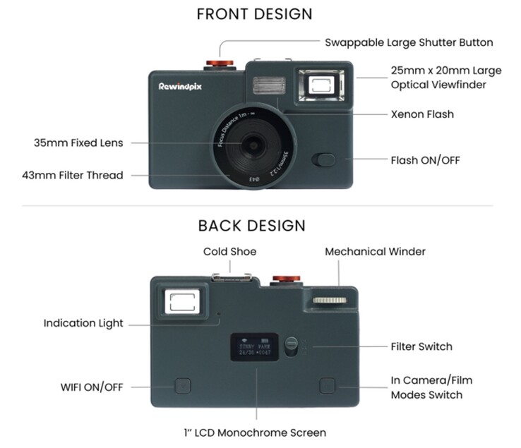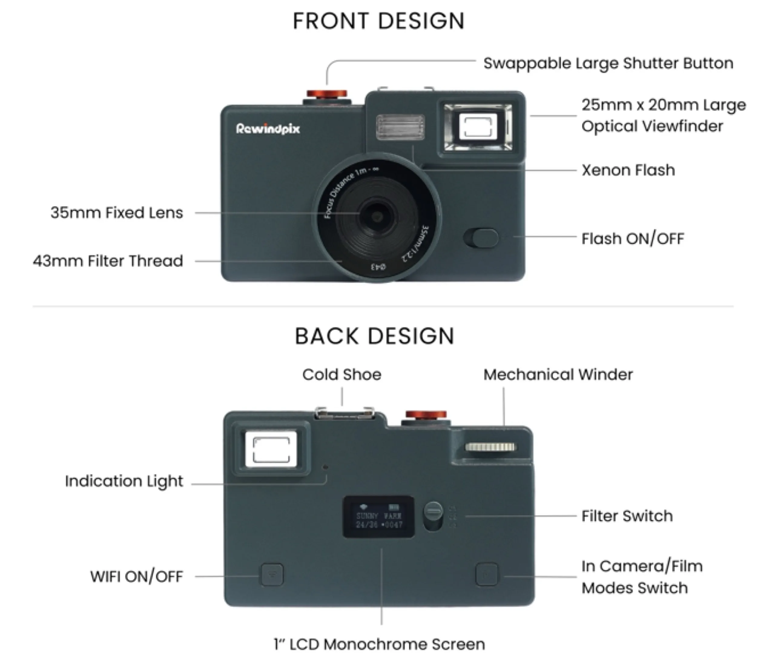 Après le succès commercial retentissant du Kodak Charmera, Rewindpix tente de tirer parti de ce succès. Avec un prix de 119 $, l'appareil est un peu plus cher, mais devrait également offrir une meilleure qualité d'image, car Rewindpix utilise un capteur de 13 mégapixels au format 1/3,06 pouces, associé à un objectif 35 mm f/2,2.