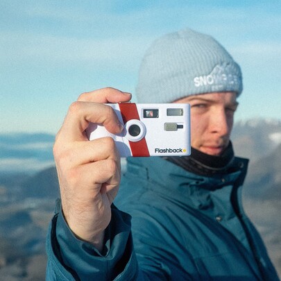 À première vue, le Flashback One35 V2 ressemble à un appareil photo compact analogique de 35 mm, disponible en huit couleurs différentes, dont deux sont même partiellement transparentes. Même l'emballage a un design rétro. Un petit viseur optique et l'absence d'écran dissimulent les parties numériques de l'appareil.