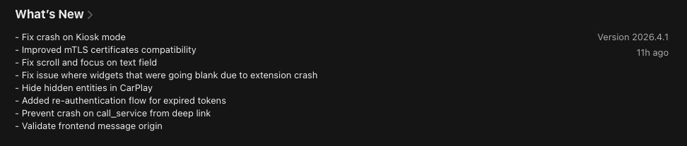 La version 2026.4.0 de l'application iOS Home Assistant est désormais disponible au téléchargement sur l'App Store Apple . On ne sait pas encore si et quand une mise à jour 2026.4.1 pourrait également être publiée pour les utilisateurs d'appareils Android.