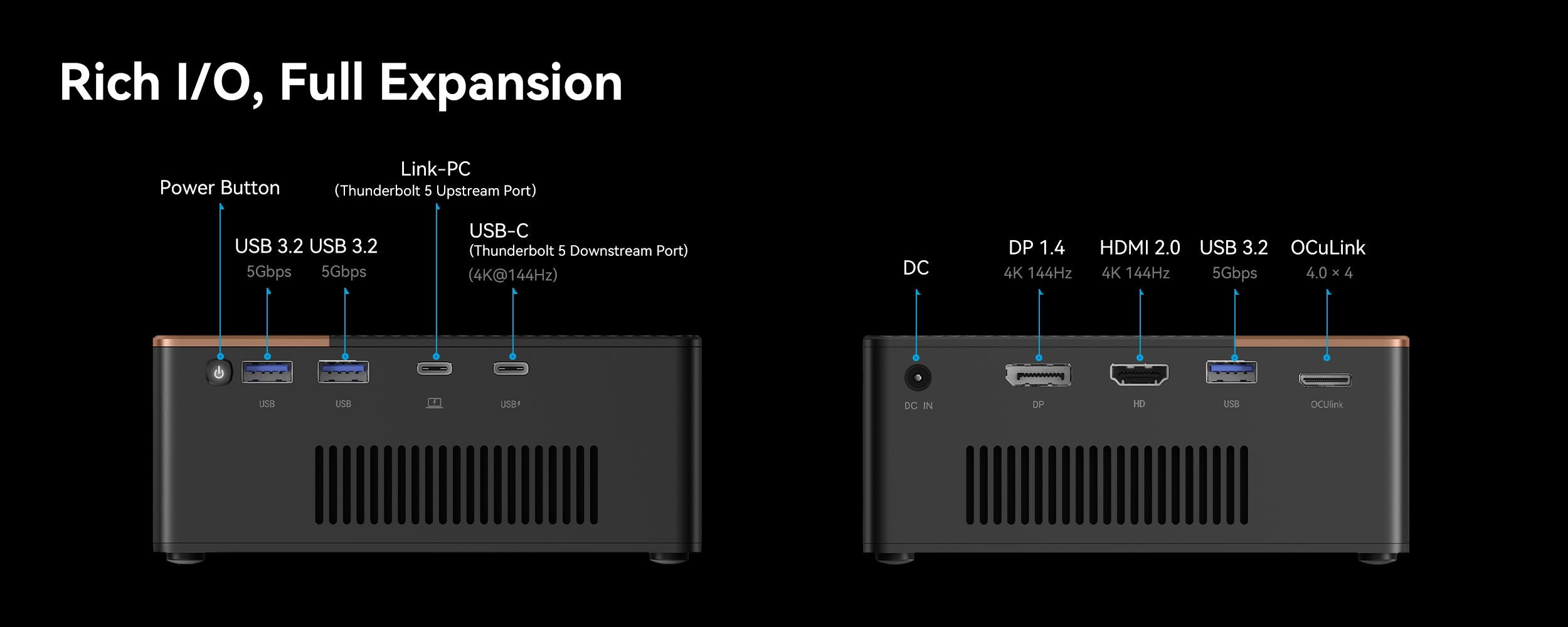 Il y aura un certain niveau de baisse de performance, mais avec OCuLink, elle n'excède généralement pas un quart si elle est associée à un hôte capable. Pour ceux dont le système est dépourvu de ce port, il existe un port Thunderbolt 5, qui fonctionnera également avec l'interface Interface USB4 v2.