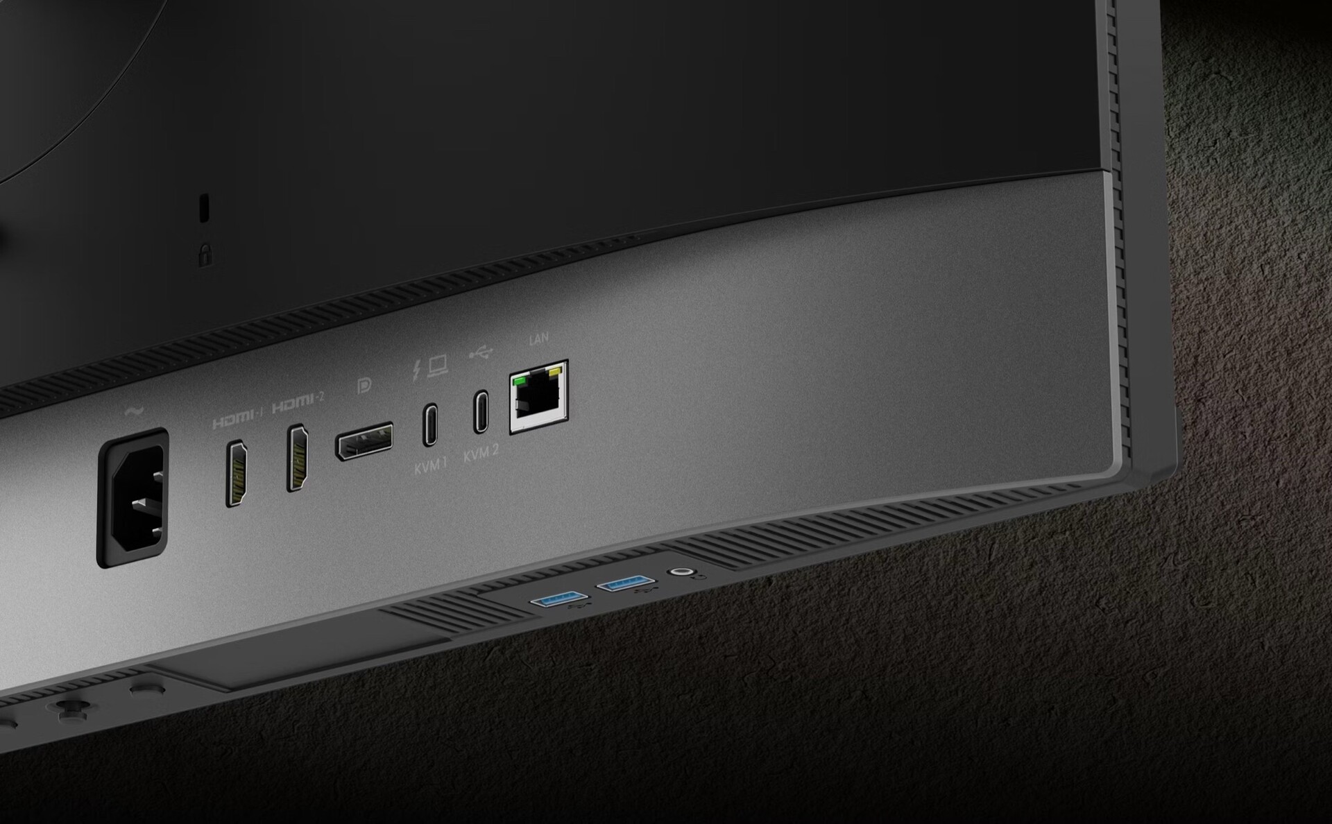 Le moniteur prend en charge Thunderbolt 4 et peut charger les ordinateurs portables connectés via USB-C avec 96 watts. Un commutateur KVM intégré, un hub USB à deux ports, deux ports HDMI, DisplayPort, Ethernet et un support réglable en hauteur complètent les caractéristiques.