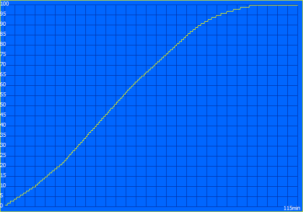 La consommation d'énergie atteint un maximum de 65,2 W, soit un peu plus que ce que le chargeur de 65 W peut fournir. Comme la consommation d'énergie diminue rapidement, l'appareil ne risque pas de se décharger en cours d'utilisation.