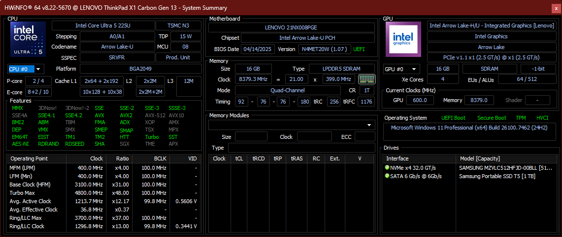 - Émissions : Le ThinkPad X1 Carbon Gen 13 devient plus chaud avec Arrow Lake