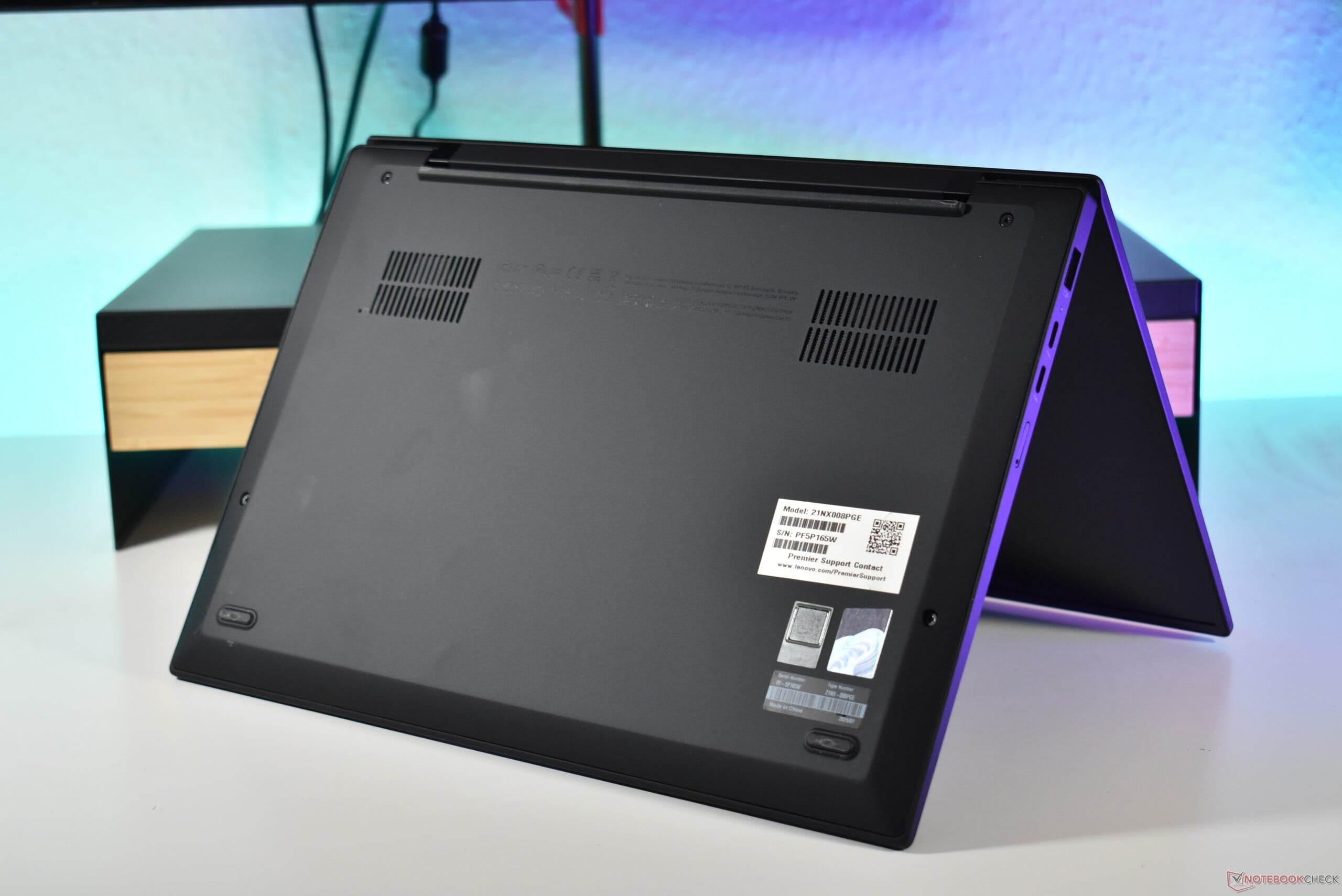 Bien qu'identique à l'extérieur à la la version précédente du X1 Carbon G13 que nous avons testéeil y a quelques différences essentielles. L'une d'entre elles est le châssis : Le Lenovo ThinkPad X1 Carbon Gen 13 remplace le couvercle inférieur en magnésium par un couvercle en aluminium. Avantage : Cela permet d'utiliser le réseau WWAN, et l'échantillon que nous avons testé est équipé d'antennes 5G. Inconvénient : Le poids est sensiblement plus élevé. Alors que le premier modèle que nous avons testé ne pesait que 982 g, celui-ci affiche 1,165 g sur la balance.