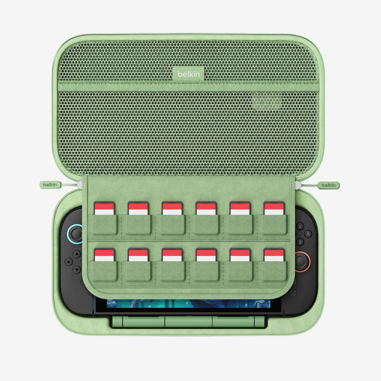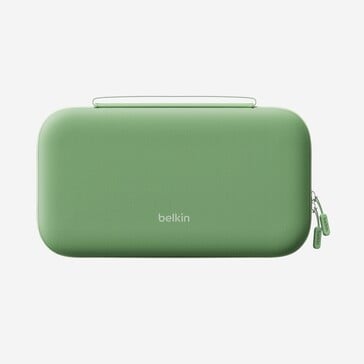 En outre, le Belkin Charging Case Pro offre un espace pour un total de douze cartouches de jeu et un compartiment à l'intérieur du couvercle, qui peut être utilisé pour les câbles ou un chiffon de nettoyage en microfibres, entre autres. Une coque rigide assure une protection optimale de la Nintendo Switch 2, tandis qu'une poignée de transport facilite son transport. L'étui de chargement Pro de Belkin se recharge via un port USB-C situé à l'avant.