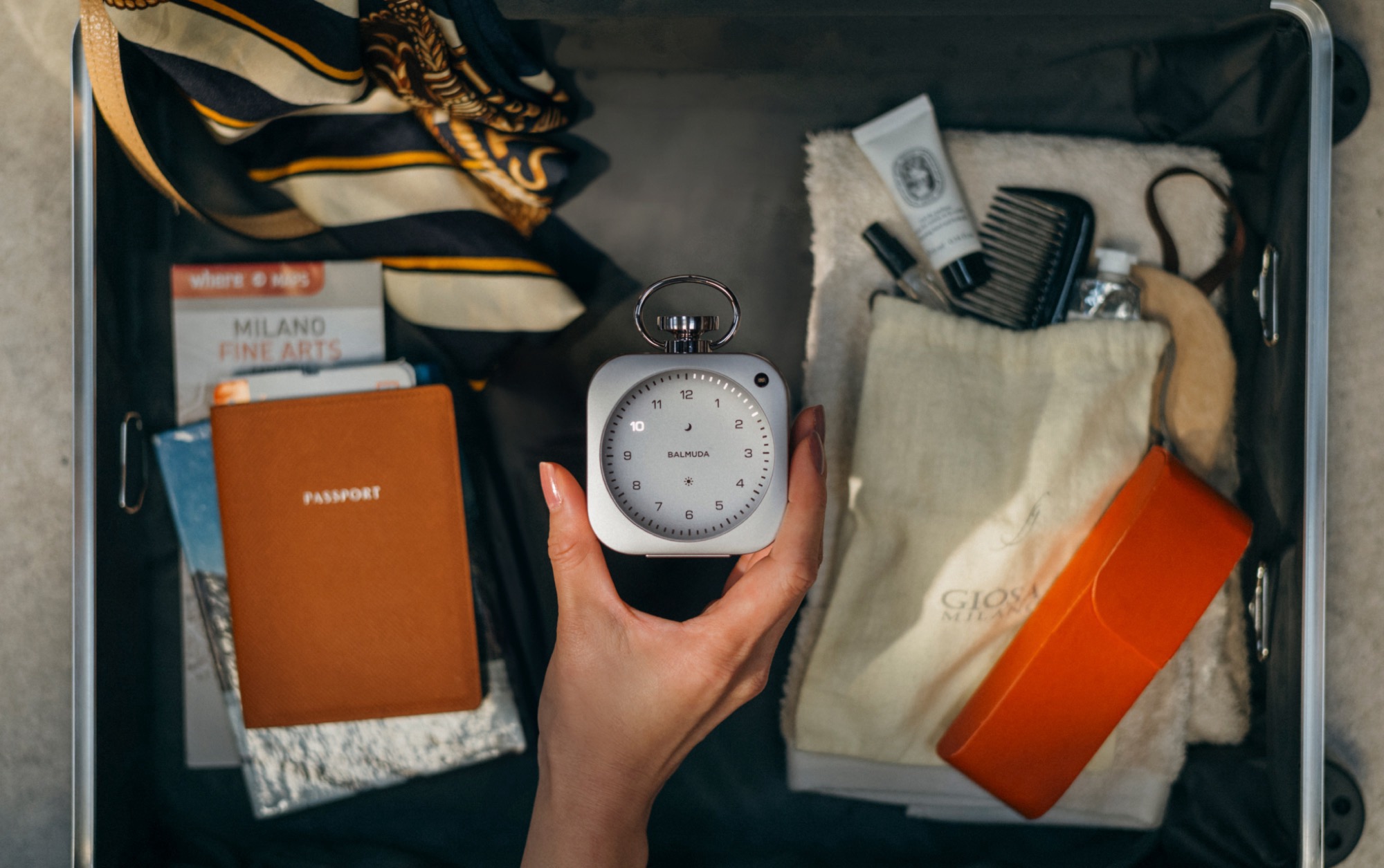 Avec The Clock, Balmuda et LoveFrom, le studio de design de Jonathan Ive, ancien directeur du design de Apple, montrent à quoi pourrait ressembler une horloge moderne. L'horloge a un boîtier unibody en aluminium avec une longueur de bord de 7,5 centimètres et pèse environ 259 grammes. Sa forme est inspirée d'une montre de poche classique
