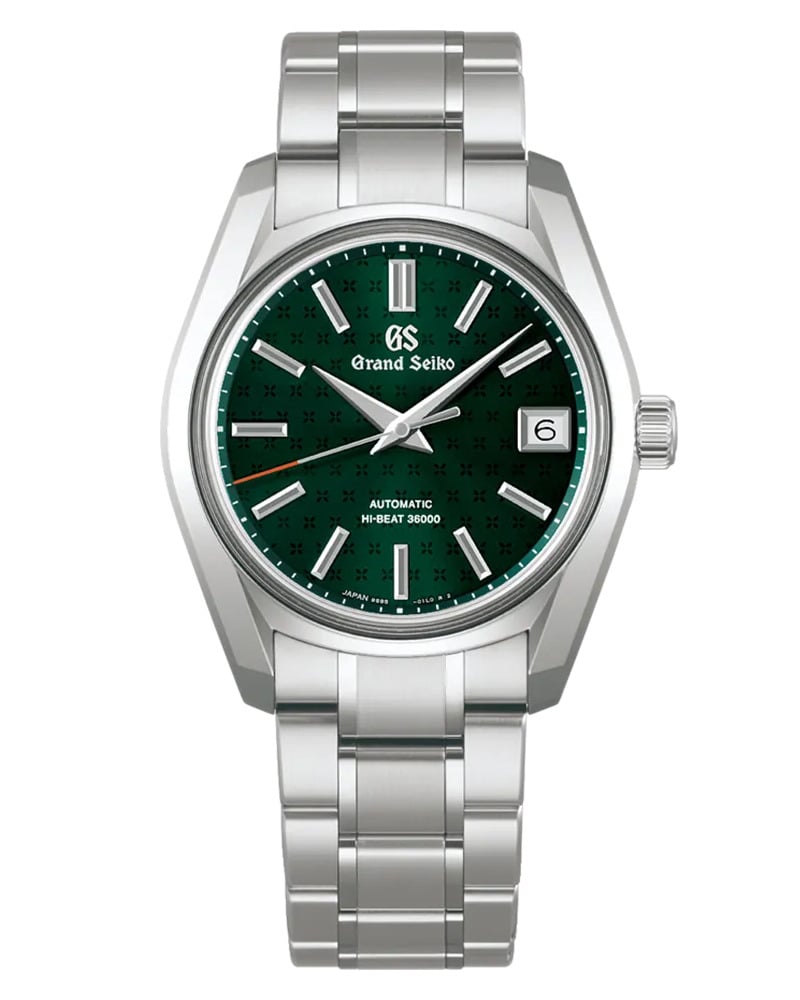 La SBGH375 est dotée d'un cadran vert soleillé avec un motif répétitif de fleurs d'olivier, visible de près dans les macrophotographies. La couleur ressemble à un vert forêt profond sous la plupart des éclairages, qui devrait varier légèrement en fonction de l'angle. L'aiguille des secondes est dotée d'une pointe orange contrastante, un petit accent qui se détache sur le ton plus sombre du cadran sans trop dominer le design. Un guichet de date encadré se trouve à trois heures. De plus amples détails devraient être disponibles une fois que des images de la montre seront disponibles.