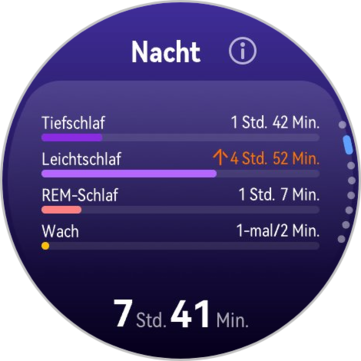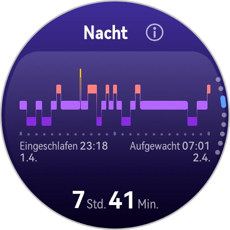 Les résultats de la nuit dernière peuvent être consultés directement sur la montre, tandis que des analyses à plus long terme sont disponibles dans l'application Huawei Health. Dans l'ensemble, les résultats des mesures semblent fiables. Bien que la Watch GT Runner 2 ne propose pas d'alarme intelligente, vous pouvez définir des heures de réveil personnalisées.