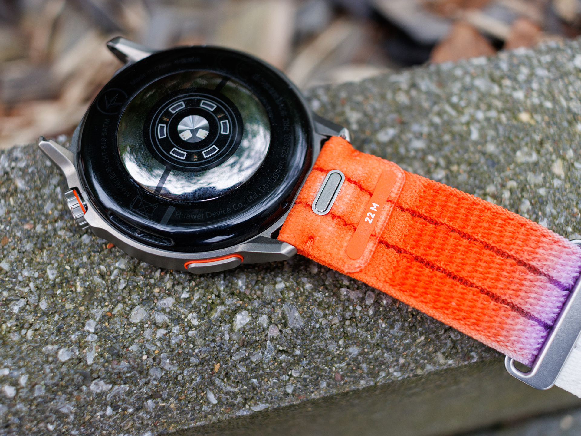 La montre est équipée d'un bracelet en tissu AirDry, conçu pour être particulièrement respirant et pour évacuer rapidement la sueur et l'humidité. En fait, nous avons trouvé le bracelet très confortable pendant les tests et n'avons remarqué aucune trace de transpiration sous le bracelet ; il sèche également très rapidement après la douche. Il peut être changé sans outil à l'aide d'un fermoir à dégagement rapide (22 mm).