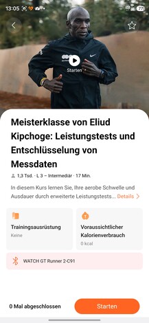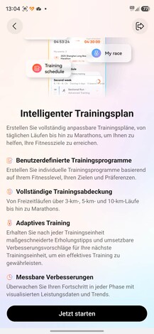 En matière de fitness, la Watch GT Runner 2, comme son nom l'indique, se concentre clairement sur la course à pied. En plus des modes de course habituels, un nouveau mode marathon a été mis en place et des plans d'entraînement adaptés sont disponibles dans l'application Santé. Ceux-ci ne sont pas liés à l'abonnement Health+ mais restent gratuits pour les coureurs.