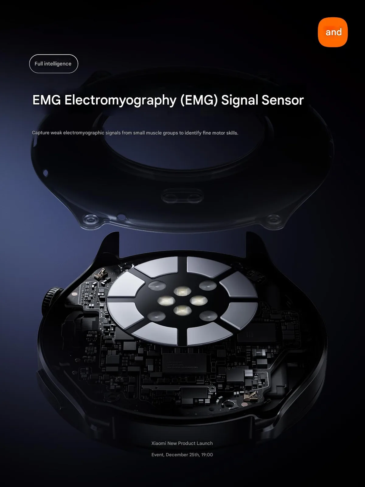 La smartwatch sera équipée du processeur Qualcomm Snapdragon W5 et Xiaomi promet de nouvelles fonctions de santé telles que l'ECG ainsi qu'un capteur électromyographique (EMG) qui peut mesurer l'activité électrique des muscles. On ne sait pas encore ce que Xiaomi compte évaluer avec cette fonctionnalité, mais en principe, la technologie peut être utilisée pour les maladies musculaires et nerveuses, mais aussi pour l'optimisation des performances dans le domaine du sport. Le design de la nouvelle smartwatch de Xiaomi est également assez frappant, puisque le fabricant a opté pour un corps en acier inoxydable et un verre saphir double face avec une surface résistante aux rayures.